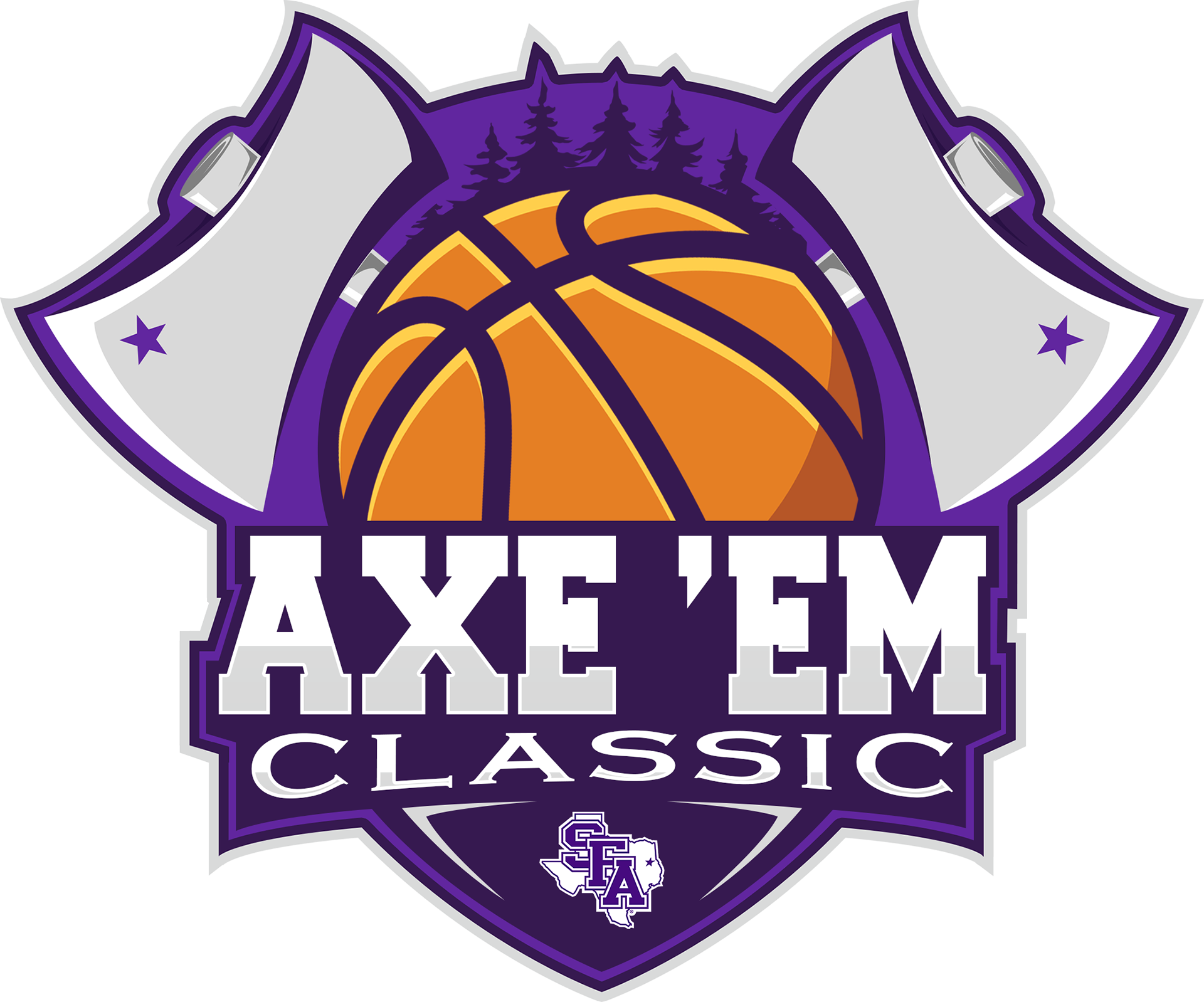 The Axe 'Em Classic was a three game round robin mte hosted by Stephen F. Austin in Naca Doches Texas. The team mascot is the lumberjacks which was represented by the axes and the forest behind the basketball.