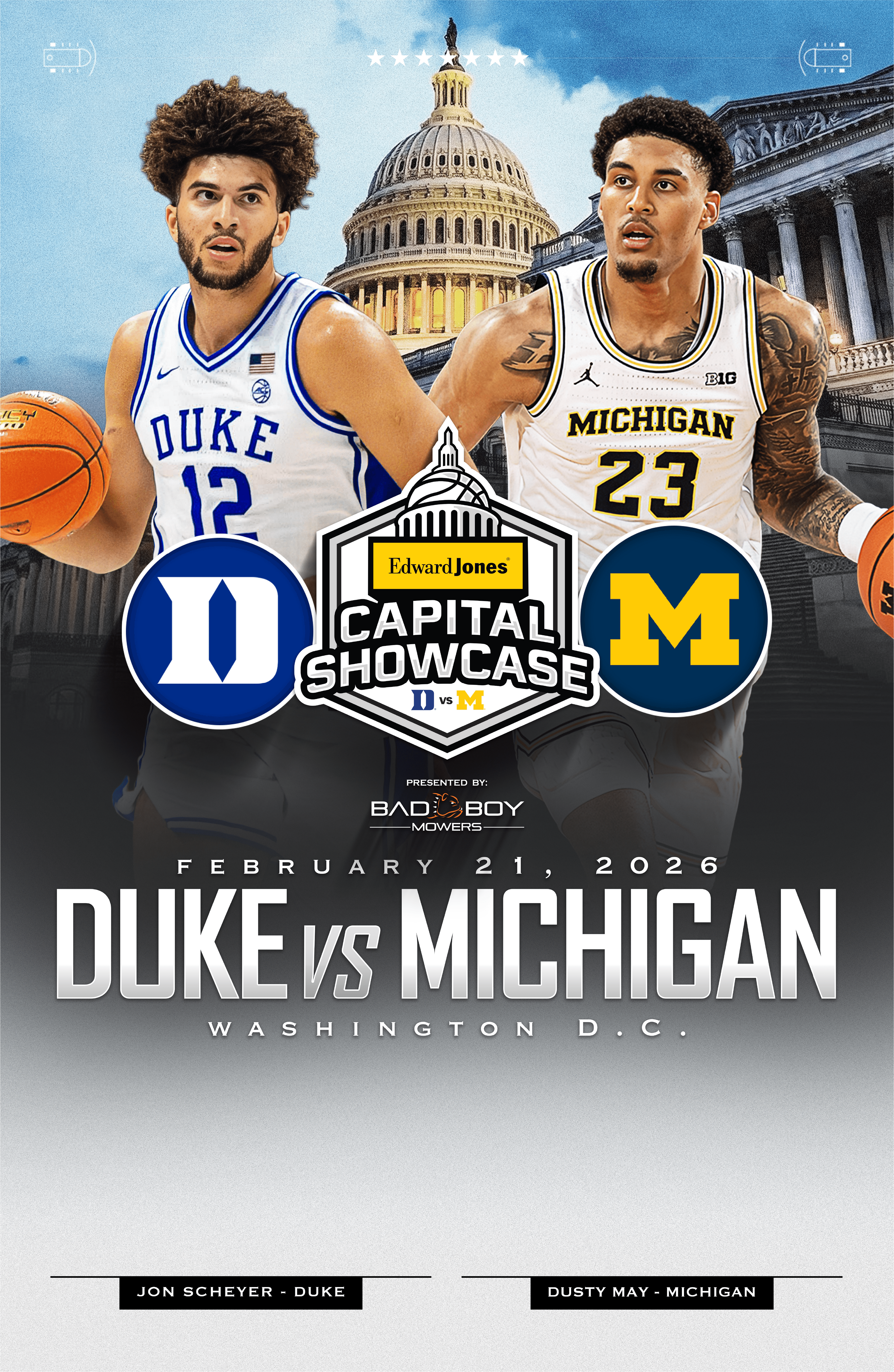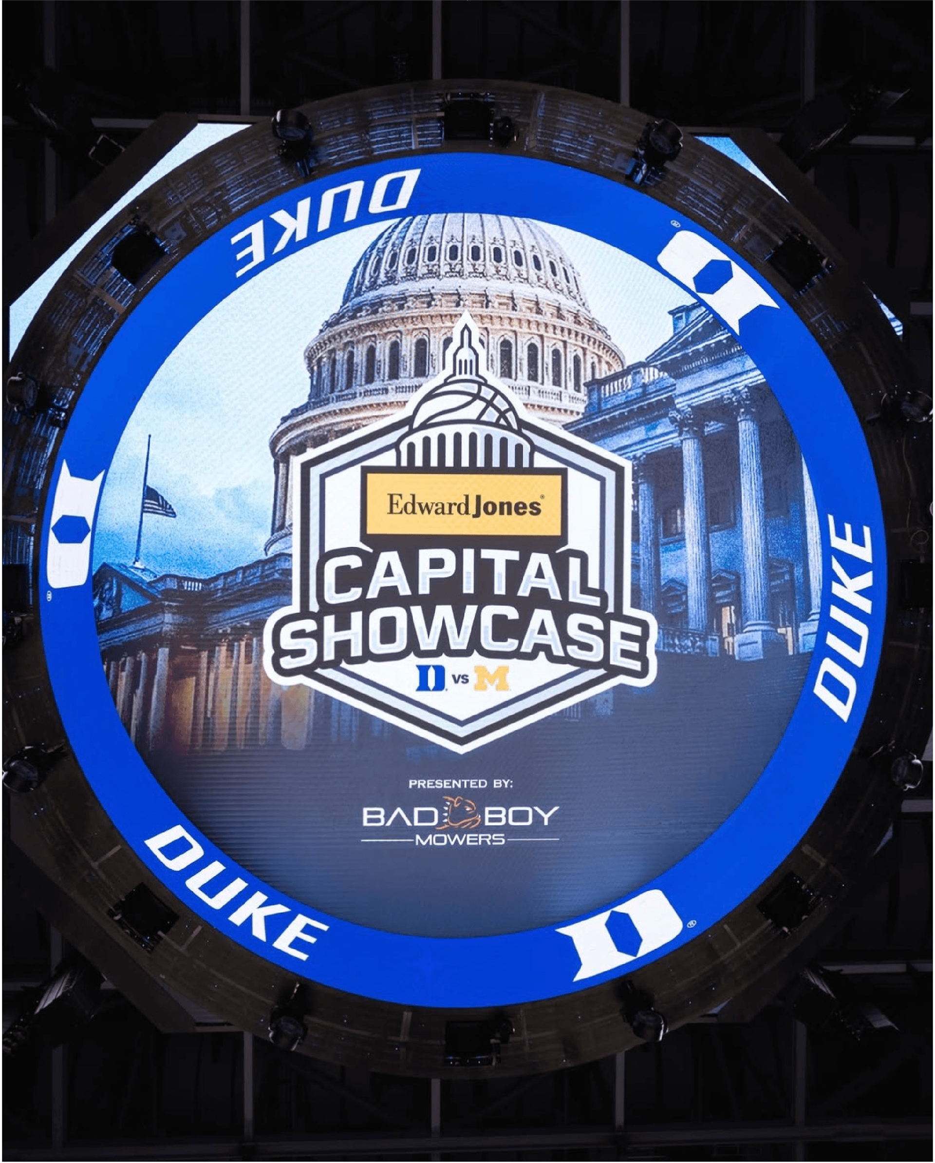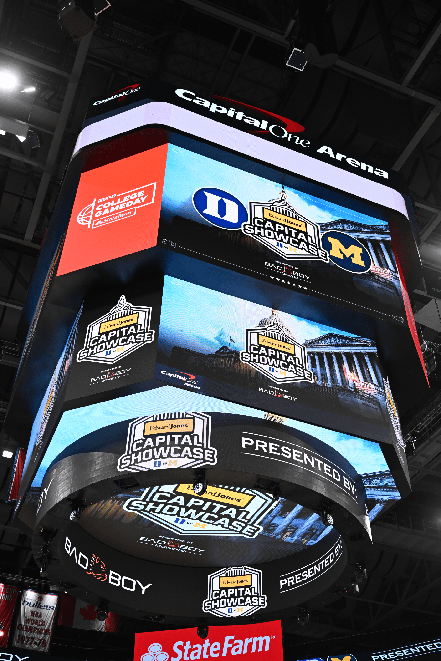 The Edward Jones Capital Showcase was a single game matchup between #1 Michigan and #3 Duke in Washington D.C. at Capital One Arena. The goals for this project were to create a truly memorable and immersive experience for the teams, fans, and media alike. Creating the visual look for this event was an incredible experience. Starting with designing the logo in collaboration with Edward Jones for the “Edward Jones Capital Showcase” to animating dynamic court projections and full venue signage for the event as well for both Duke and Michigan open practices in a first of its kind ESPN College Gameday experience, to transforming locker rooms and tunnels, to creating a webpage and designing cohesive social media assets that built hype for weeks.