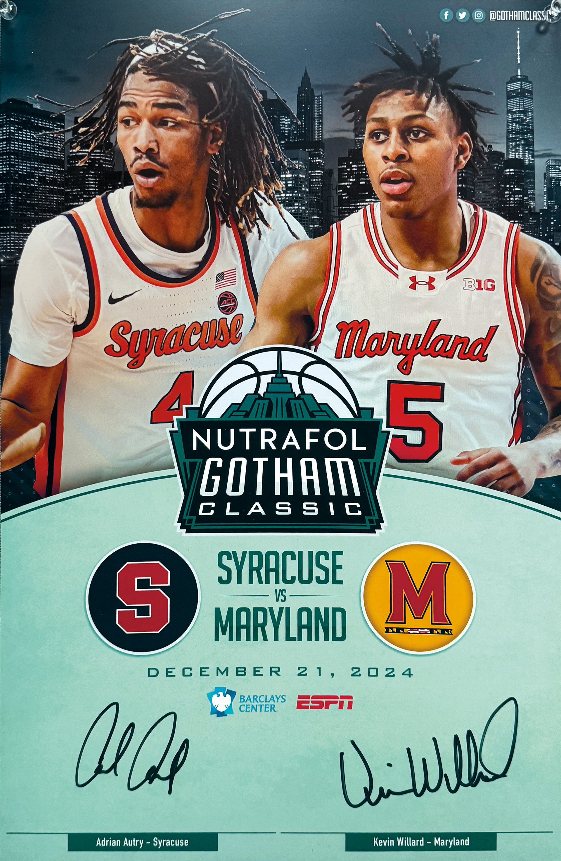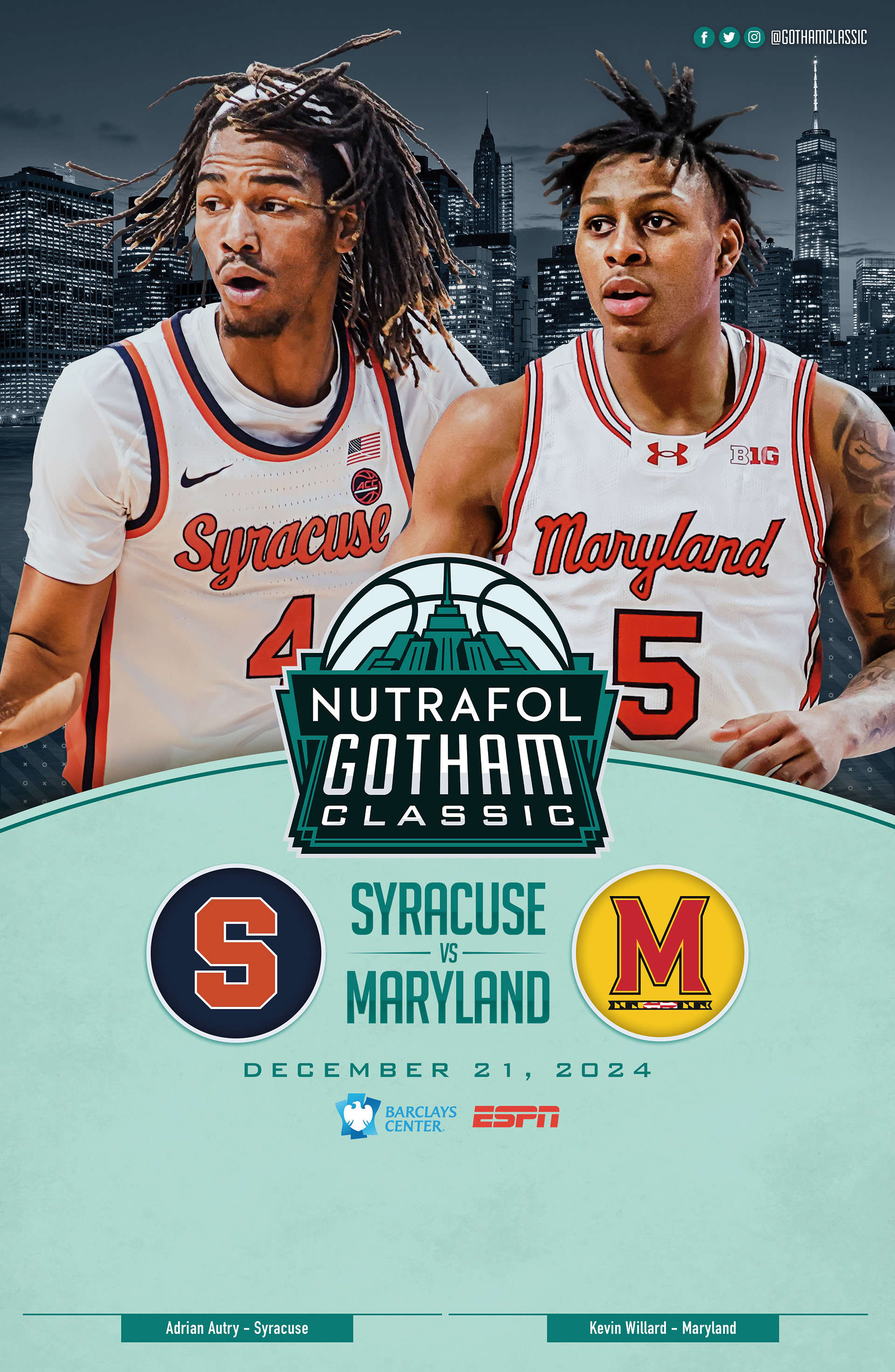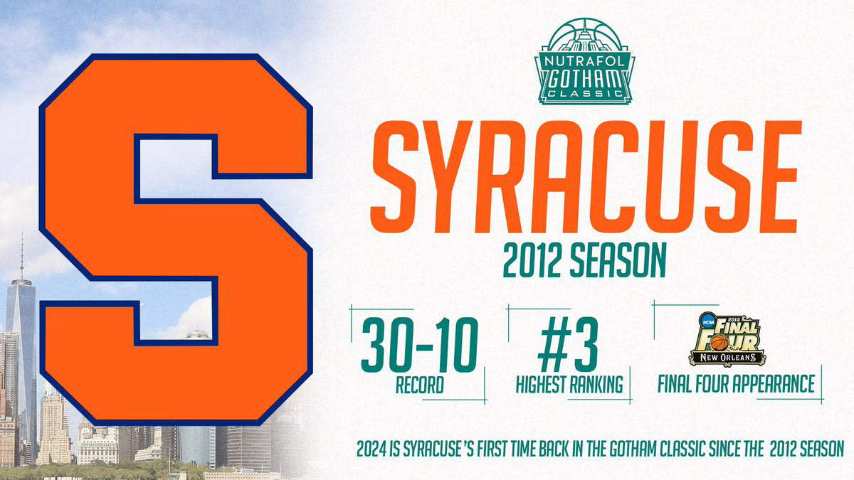 The 2024 Nutrafol Gotham Classic was a Men's College Basketball Game featuring Syracuse vs Maryland. The game was played at Barclays Center in Brooklyn, N.Y. and was broadcast on ESPN
