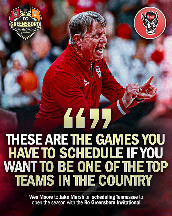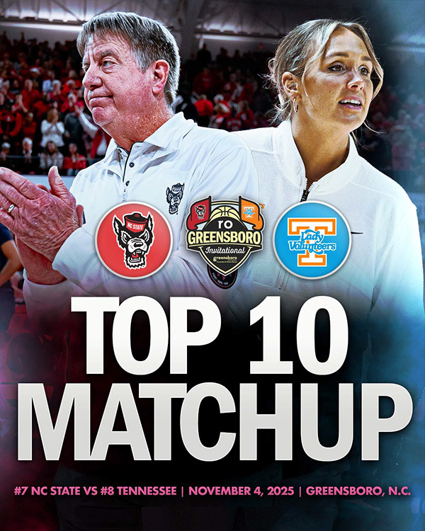 The Ro Greensboro Invitational was a Top-10 women's college basketball game between the #9 ranked N.C. State Wolfpack and the #8 ranked Tennessee Lady Volunteers. The game took place on November 4th, 2025 at the Greensboro Coliseum in Greensboro, N.C. and was broadcast on ESPN2.